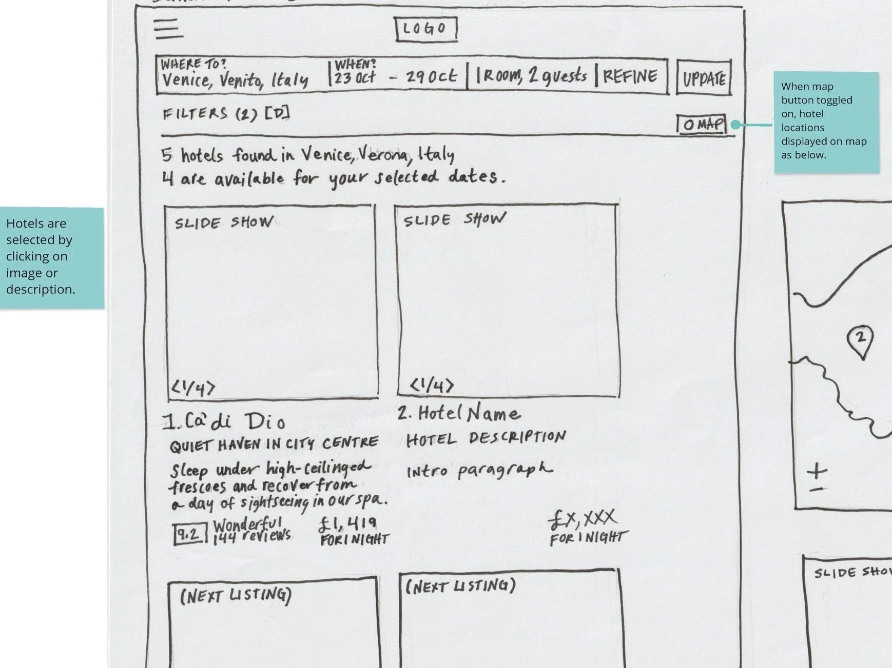 A redesign of the hotel booking experience, aimed at streamlining the process and making it more intuitive, accessible, and user-friendly. The project prioritised clear pricing, informative visuals, and upfront filters with interactive maps — allowing users to easily explore, compare, and confidently book their stays, with the freedom to change their minds and start fresh at any point.